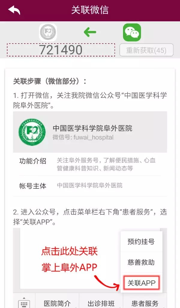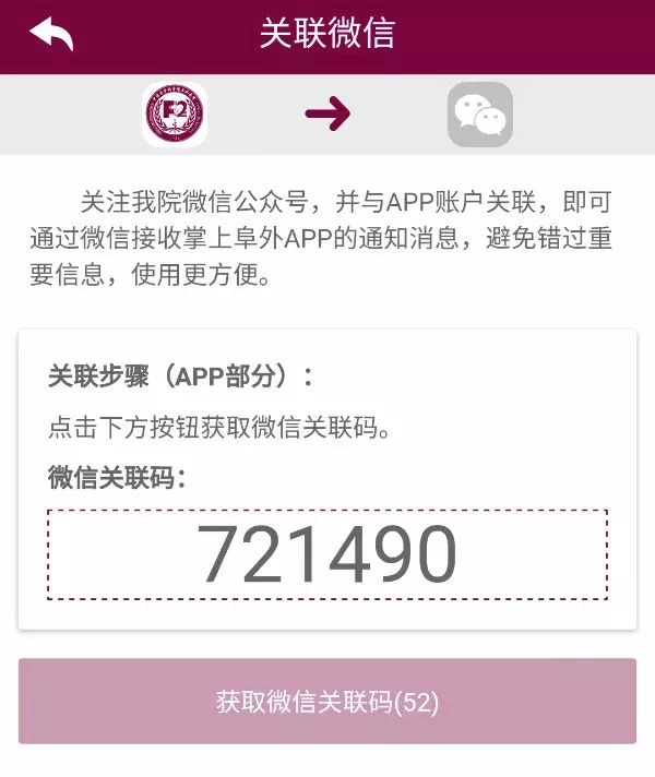 2、点击关联微信按钮,按照页面提示步骤操作,获取关联码。