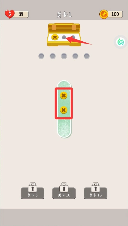 1. 进入游戏后,点击拾取螺丝,并把它放置到合适的位置。先对底部区域进行处理,以便为后续操作留出空间,同时要留意保持画面的整洁与有序。