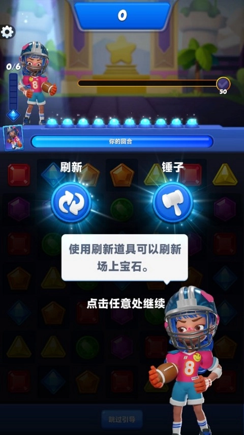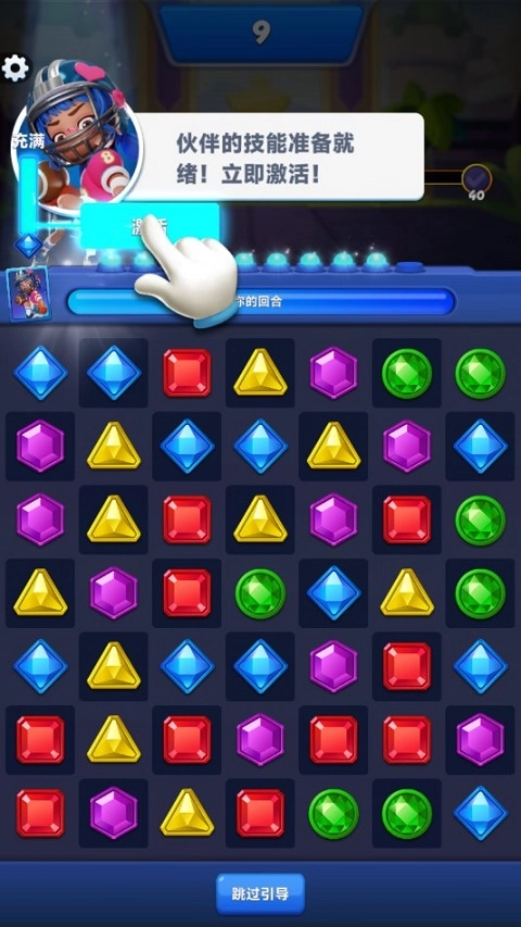 每一位角色都有技能,手机对应颜色的宝石可以积攒角色的能量,当能量槽满后,即可释放角色技能。不过要注意的是,能量槽满后若是不释放,再消除自己对应颜色宝石是不会积攒能量的。
