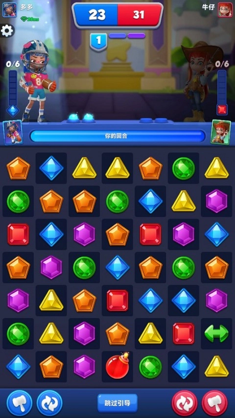 宝石大乱斗是竞技版的三消游戏,和常见的过关斩将、关卡越高难度越高的三消游戏不同,它的游戏侧重点除了三消,还有竞技。