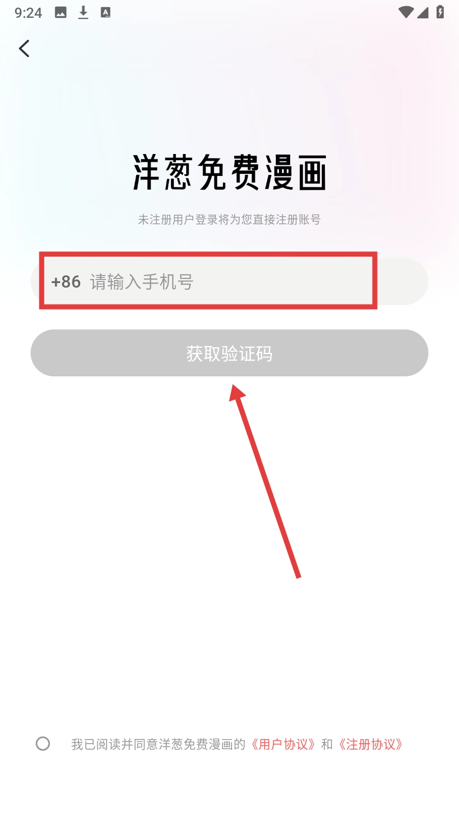 3、在登录页填手机号后点【获取验证码】进行验证。