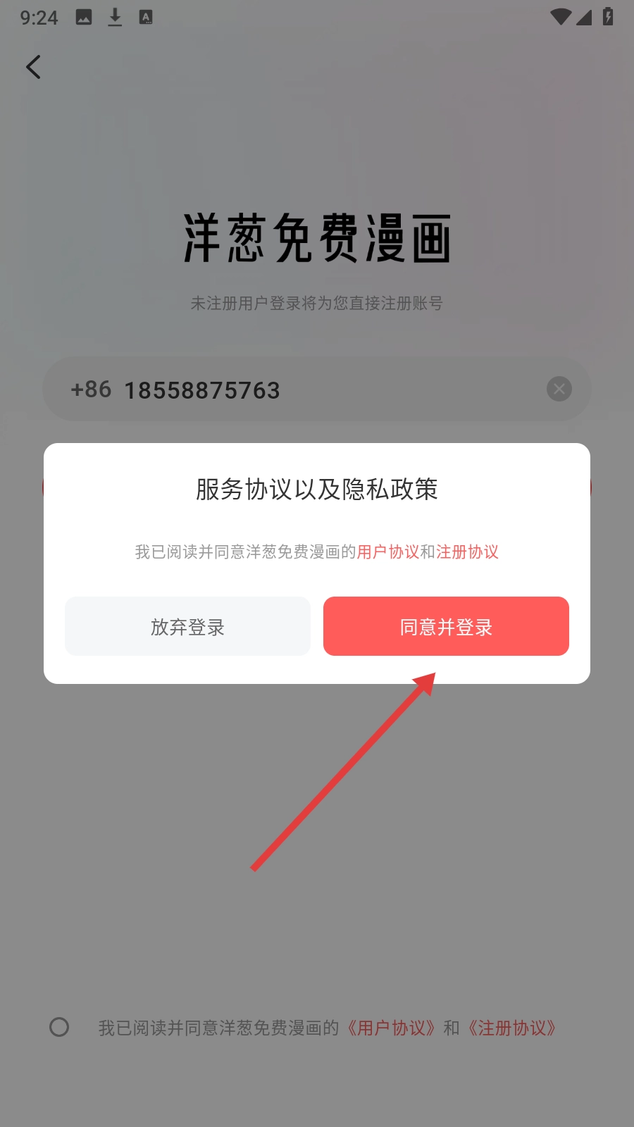 4、在弹窗点【同意并登录】即可获取验证码继续登录流程。