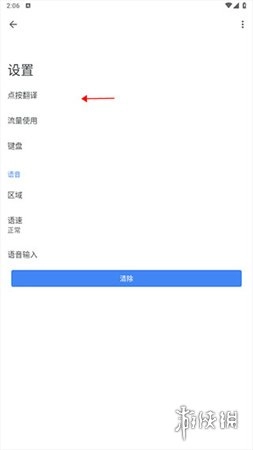 2、在设置中选择“点按翻译”选项进入。