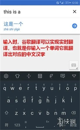 1、打开谷歌翻译主界面,在输入框中点击一下,然后输入要翻译的文本,谷歌翻译支持实时同步翻译,即每输入一个单词,会立刻给出相应的中文翻译。