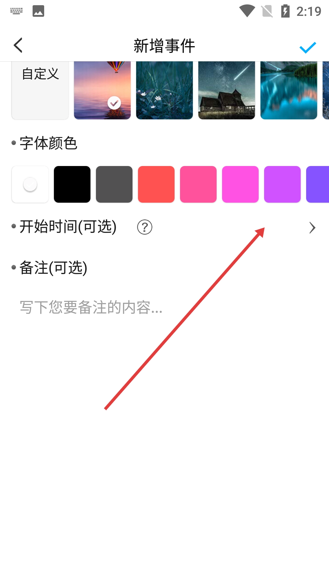 1. 于首页点击右上角的【+】,从而进入新增事件页面。