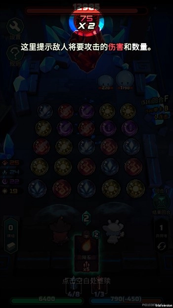 5、上方会出现关卡BOSS的生命值和敌人的攻击数量等,打完即可获取胜利。
