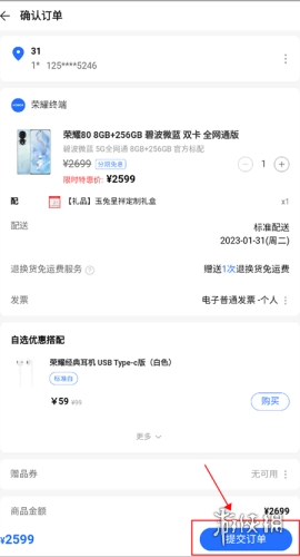2、提交订单后,进入付款界面,在下方的支付方式中选择花呗或信用卡分期付款即可。