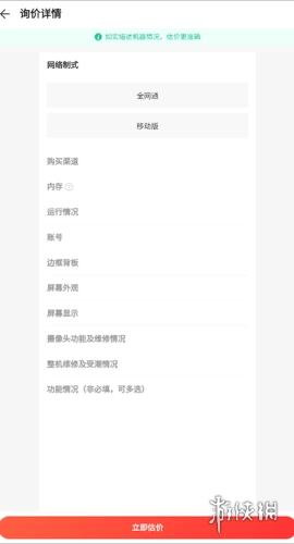 4、描述你的手机规格、购买渠道等信息,点击立即估价即可。