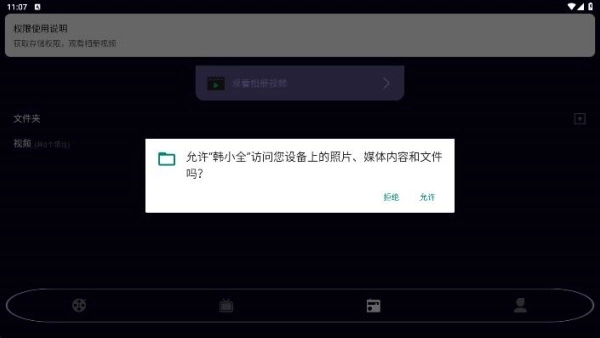 3、在播放器页面,开放基本权限,就可以导入本地各类视频,轻松观看。