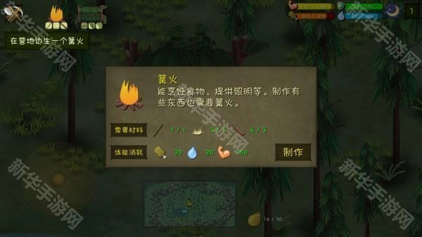 3. 在营地睡觉,不仅能使体力逐步恢复,还可以存放一些物品,且营地会提供充足的补给。1.火是你生存的重要工具,比如可以做饭和提供照明的篝火,给你带来光明。