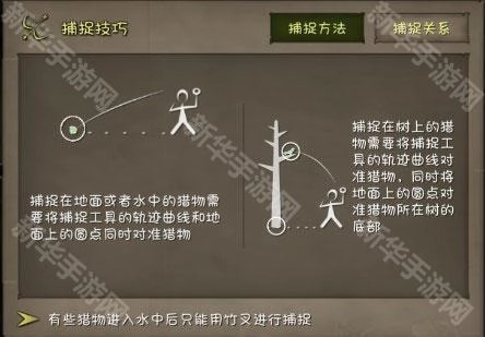 原始社会想要生存下来少不了火和食物,生火需要储备木材,而食物可以通过捕猎获得,玩家可以设置陷阱或者利用抓鱼工具,来捕得各种野味。