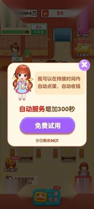 4、要提高餐厅的水平,每升一级都会有红包,满足一定条件就可以提现。