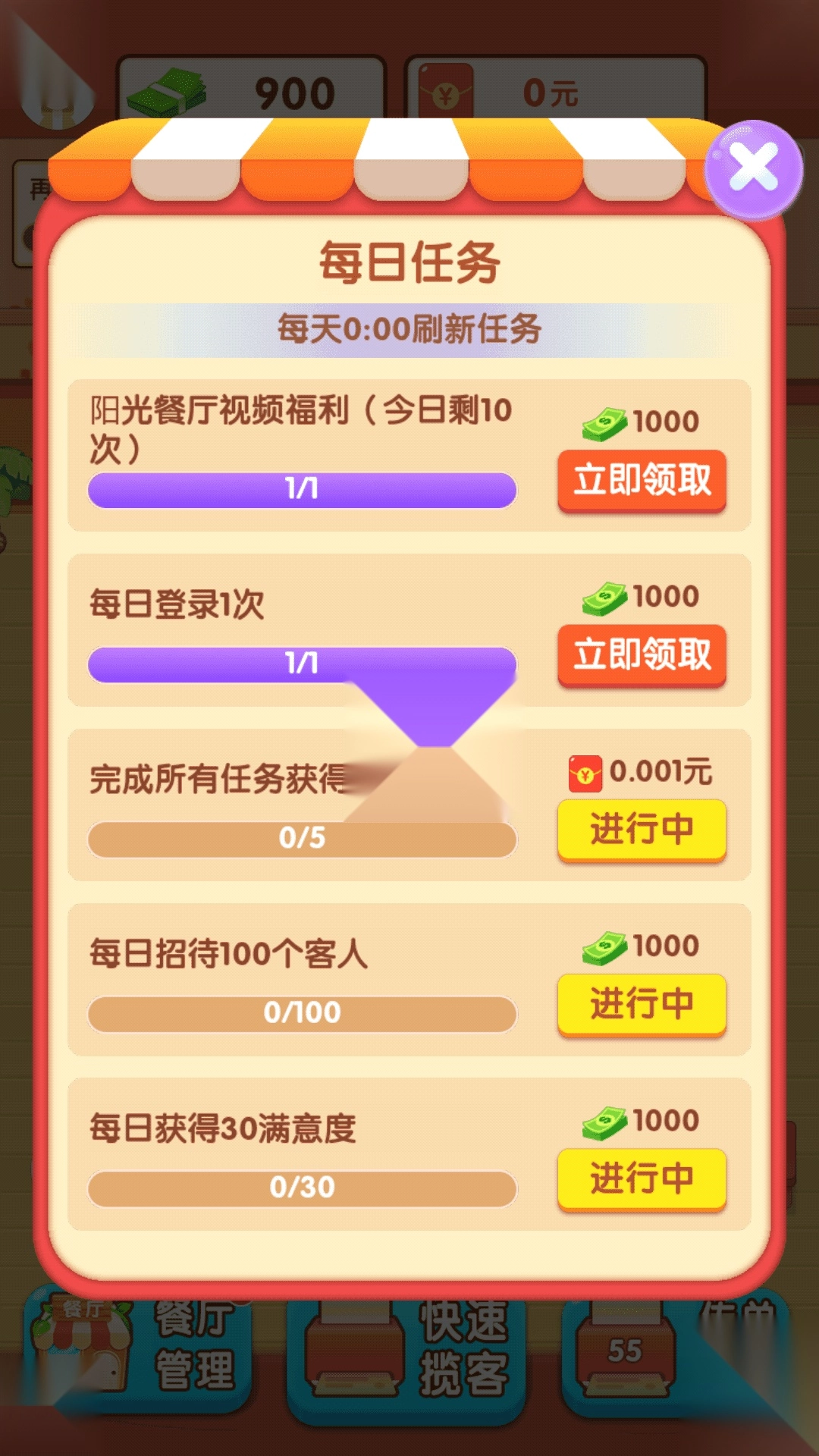 3、在游戏中,玩家可以通过领取红包来完成任务,并且将餐馆升级到更高等级,这个非常简单。