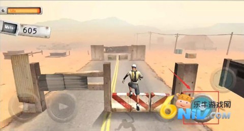 1游戏开启时,左上角的橙色长条代表你的生命值,在生命值下方会实时显示你当下的跑酷距离,以便你随时了解自身状态。