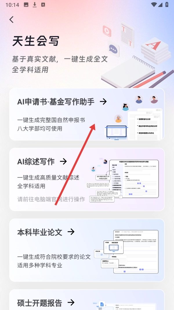 3、选择【申请书基金写作助手】,开启申报书生成。