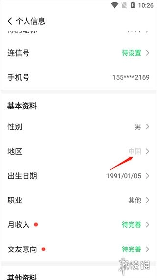 3、在编辑资料页面中,找到并点击“地区”选项。