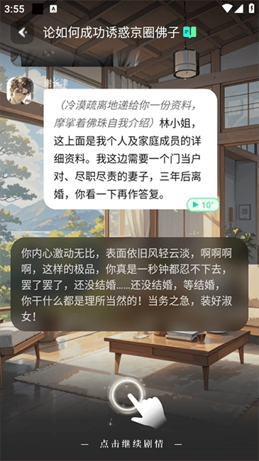 互动故事体验:提供恋爱、悬疑、大女主、abo、疯批、吸血鬼、玄幻等多种题材剧情,用户可沉浸式参与故事,通过对话选择推动情节发展。