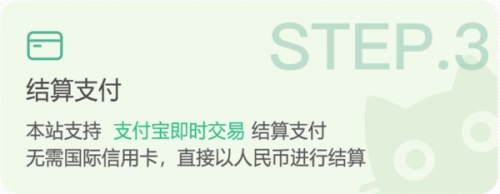2.下单支持使用支付宝来进行付款,免去需要使用国际信用卡的各种繁琐程序与事项。