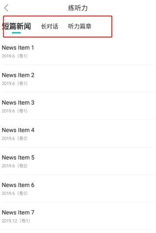1. 打开本站的软件,点击进入首页,选择你想要学习的等级与学习板块,例如我们选择练听力。