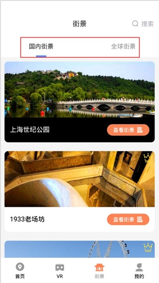 5、在“街景”中分别可以查看“全国街景”和“全球街景”;