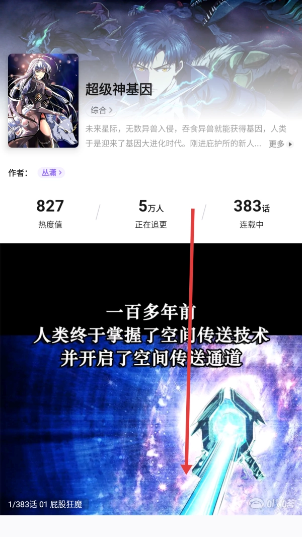 3、在作品详情页【下滑】,进入漫画阅读页面。