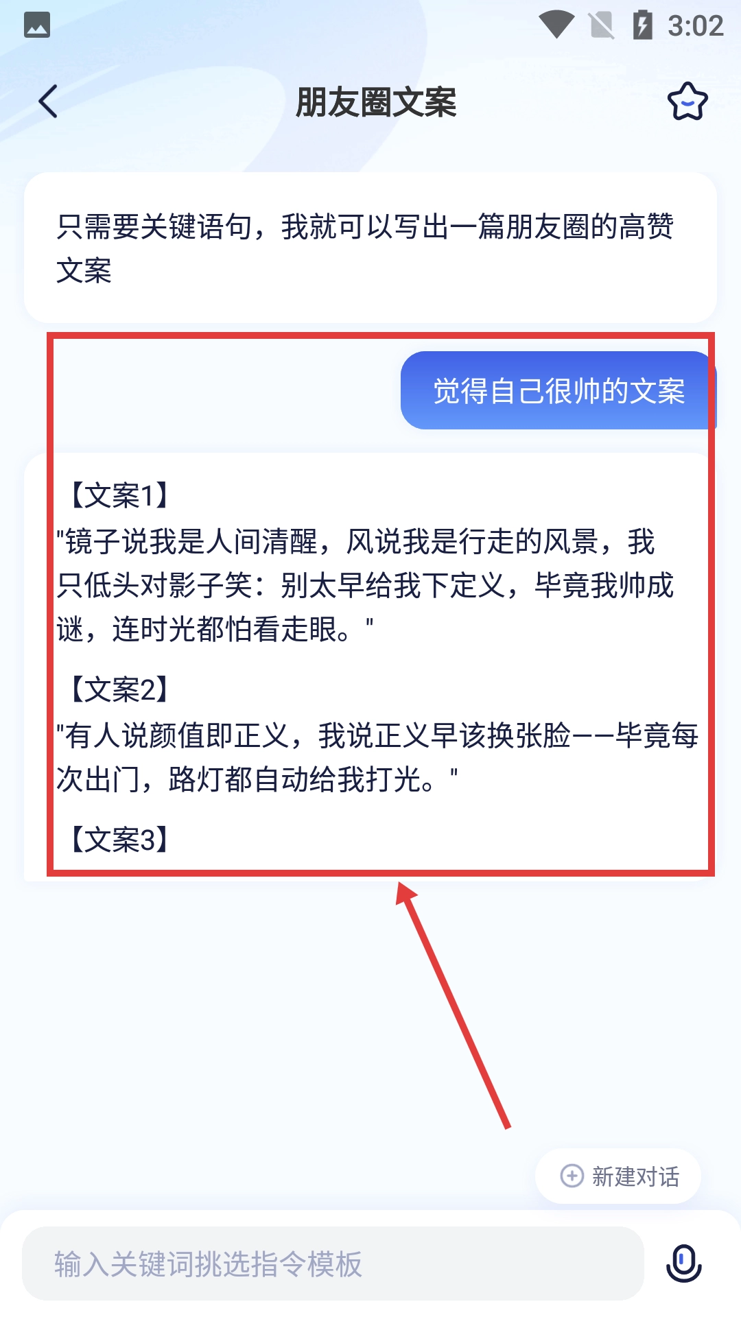 2、在助手页面点击【朋友圈文案】,进入文案生成页面。