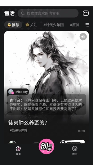 自主上传与灵感共创:除了剧本,音活还支持用户自主上传剧本,并参与到灵感共创的活动中,为社区贡献自己的创意,同时也从他人的作品中汲取灵感。