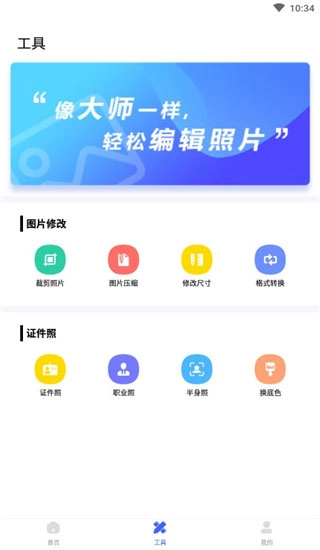 2、在工具菜单栏可以看到有裁剪、压缩、换底色、智能抠图等功能