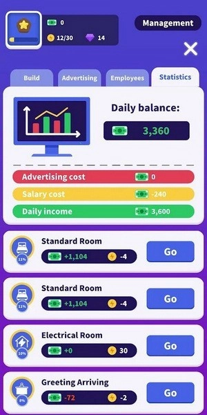 2、通过您的智能操作,您可以在整个游戏中找到您的酒店。