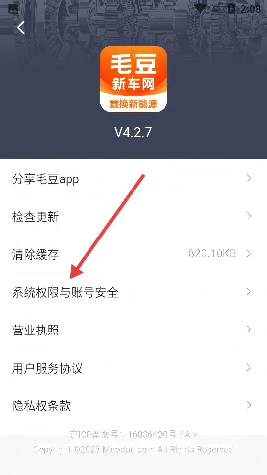 2、在设置页点击【系统权限与账号安全】选项,进入下一界面。