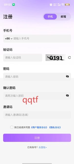 在注册界面输入手机号,密码等信息,点击完成注册。