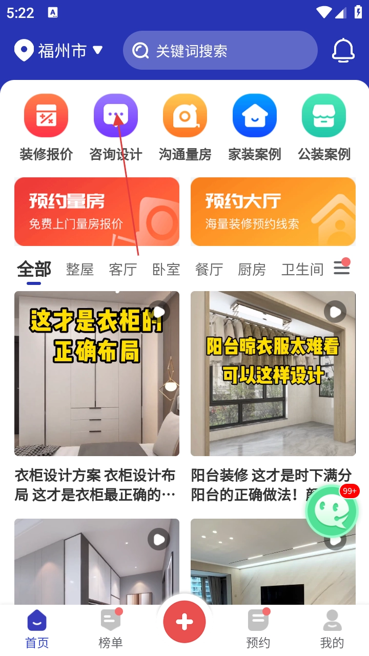 2、在首页点击【咨询设计】,进入设计咨询流程。