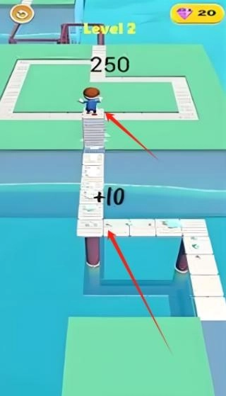 1. 踏上首关跑道,于奔跑过程中收集首批木板,迅速为前方的小型断层搭建桥梁,就此开启跑酷建造的旅程。