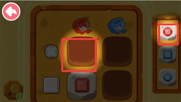 3、第一关左边和右边的都有东西,左边上方对应的是左边图案的颜色,左边的左侧对应的是放置在小坑里面的图形,将图形放到正确的位置就可以通过。