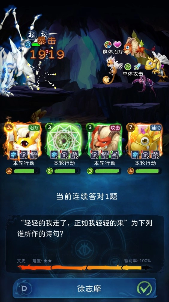 2、进入战斗后,我们需要选择对应属性的题目来控制宠物进行战斗。