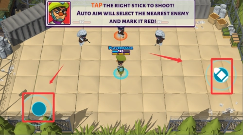 1、基础射击操作,通过虚拟按键控制移动、瞄准和射击。连续命中会积累暴击能量,提升后续伤害输出。