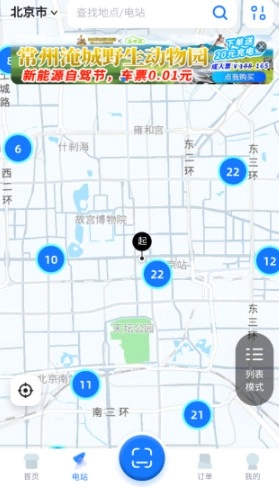 2、点击电站地图模式可以直观的查看到附近的充电桩