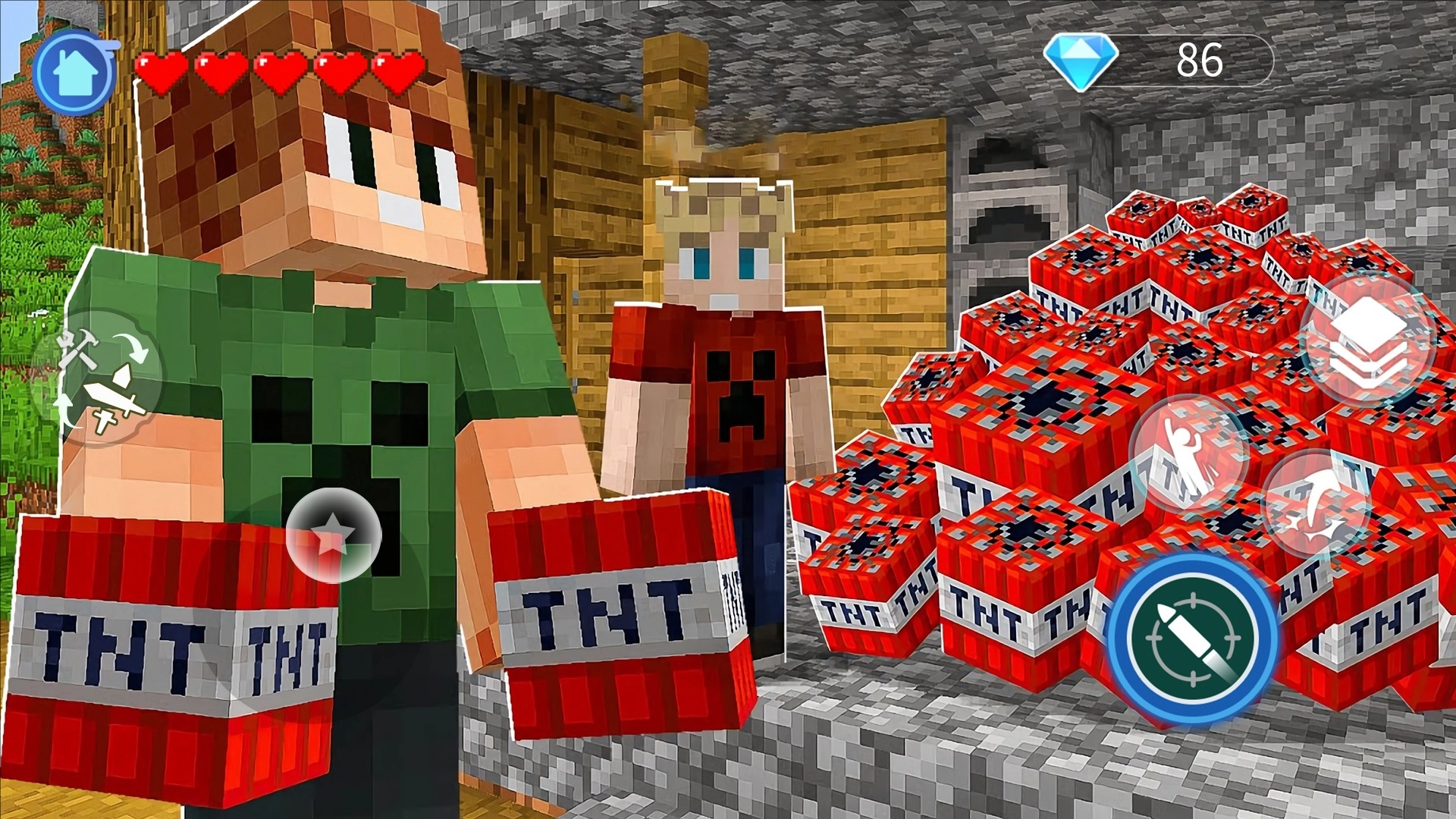 3. 极致破坏:TNT自由世界中的一大亮点是TNT炸弹的使用。玩家可以设计并放置各种TNT炸弹,通过精确的计算与布局,引发连锁反应,无论是小范围的精准爆破还是大规模的毁灭性打击,都能在这里实现。
