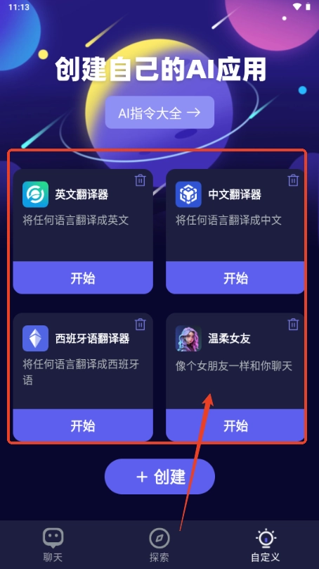 5、通过自定义功能,可以自由选择智能体与我们进行聊天。