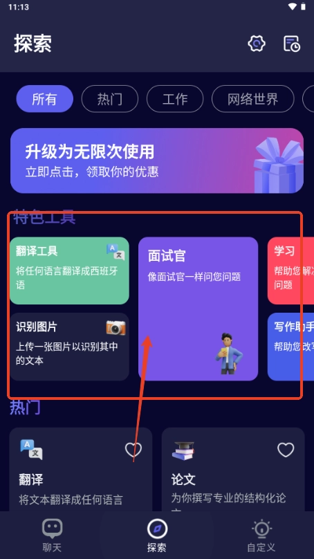 4、选择探索功能,这里也可以生成一些非常不错的工具;