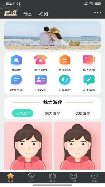 3.多种不同的功能模板,在线观看真人发布的视频,查看其他用户发布的把旅游动态。