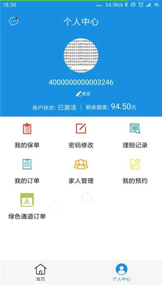 5、软件“个人中心”具备以下功能:我的保单、密码修改、理赔记录、我的订单等。