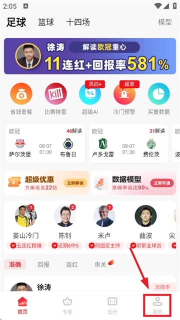 1、首先打开球胜比分,接着点击右下角“我的”;