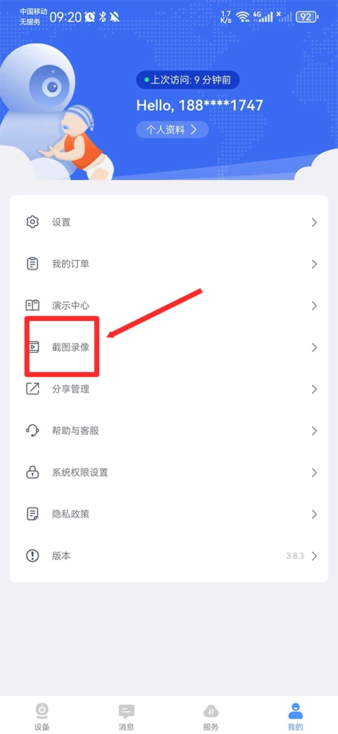 1、在我所使用的界面里点击截图录像功能。