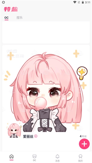 1. 完成安装后,打开软件便会进入首页。整个页面极为简洁,不存在任何广告。在此页面,能够看到OC创作者发布的作品。