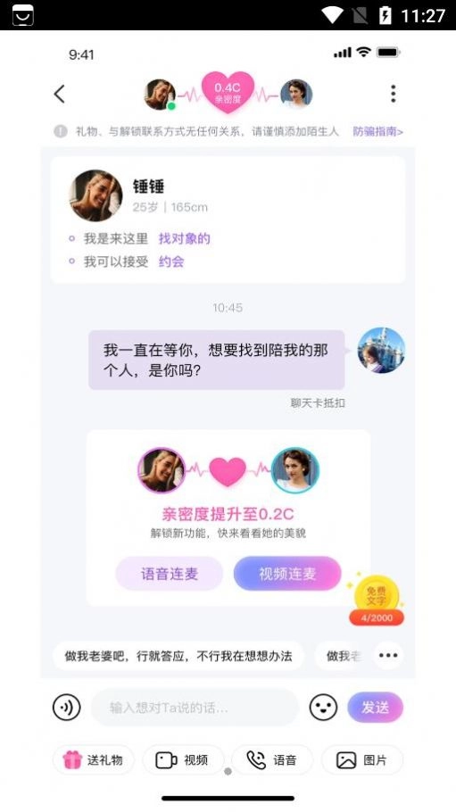 3、可以通过语音聊天、视频通话的方式和TA互动交友;