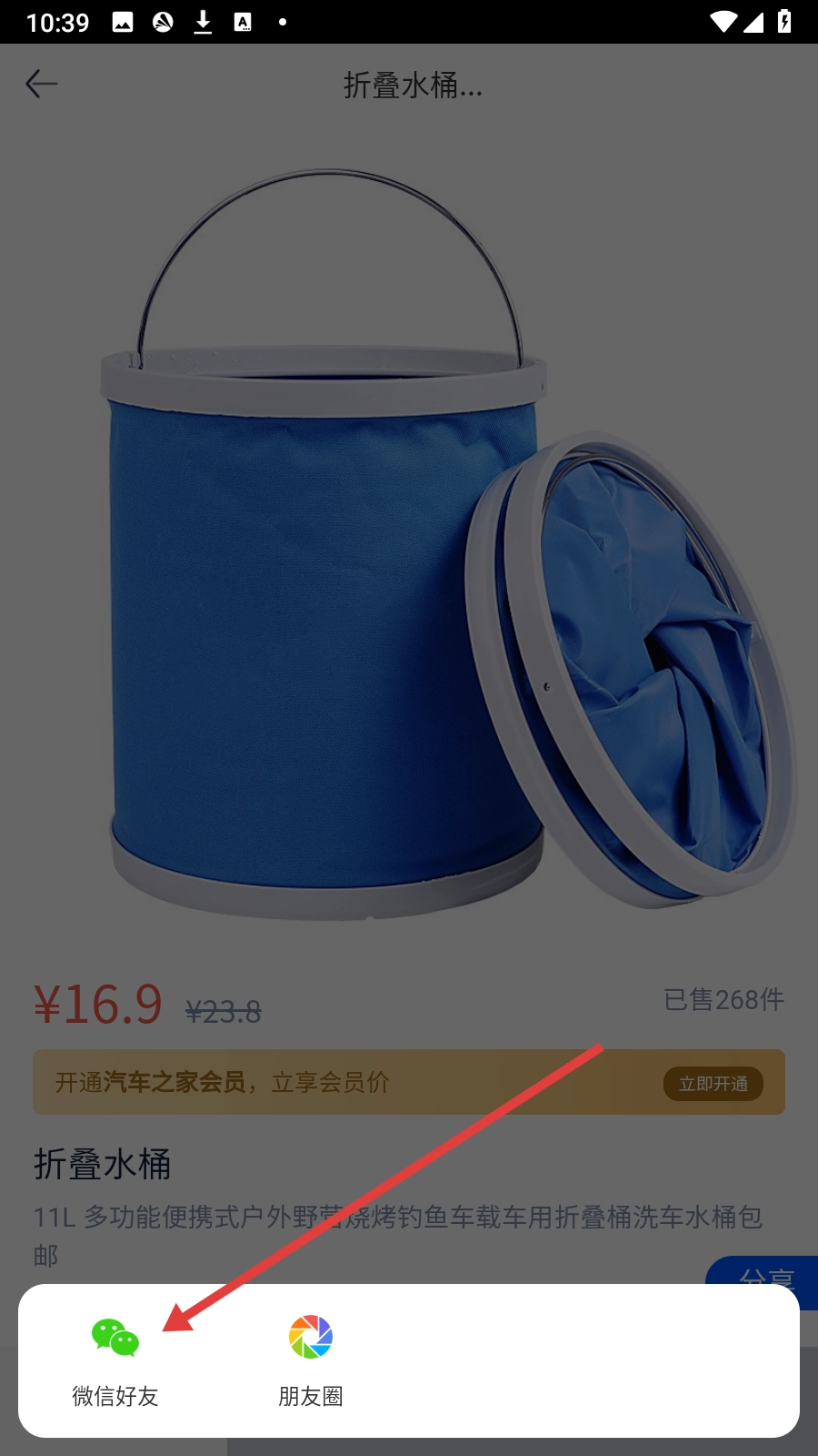 3、在商品详情页面点击【分享】,弹出分享选项。
