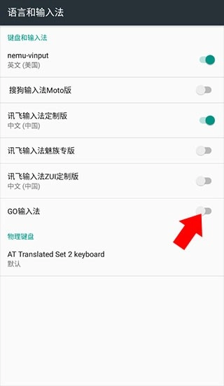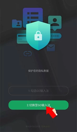 3、启用之后会返回go输入法的引导界面,点击第二步
