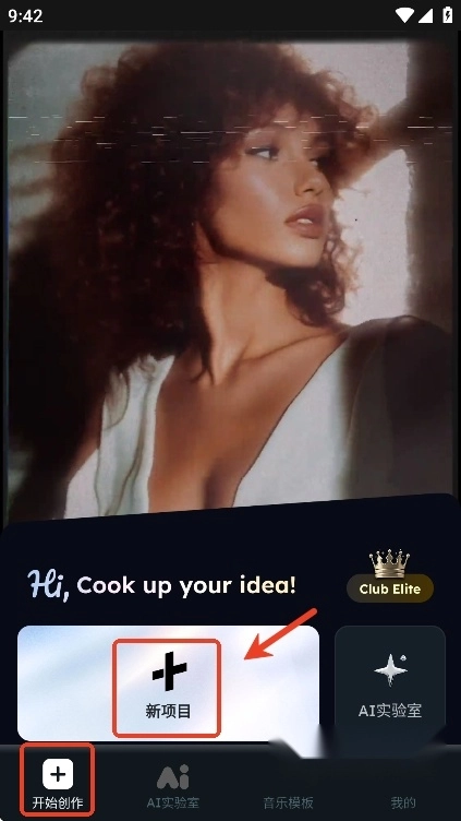 用户们若要打开并开启视频创作之旅,可直接点击开始创作页面的“新项目”。