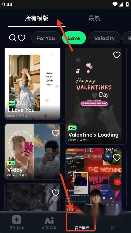 用户们也可以在音乐模版页面挑选自己喜欢的视频模版